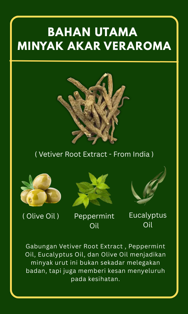 ✅ Sapu sedikit pada bahagian yang sakit atau perlukan kelegaan (contoh: pelipis, tengkuk, sendi, perut). Urut perlahan sehingga serap.